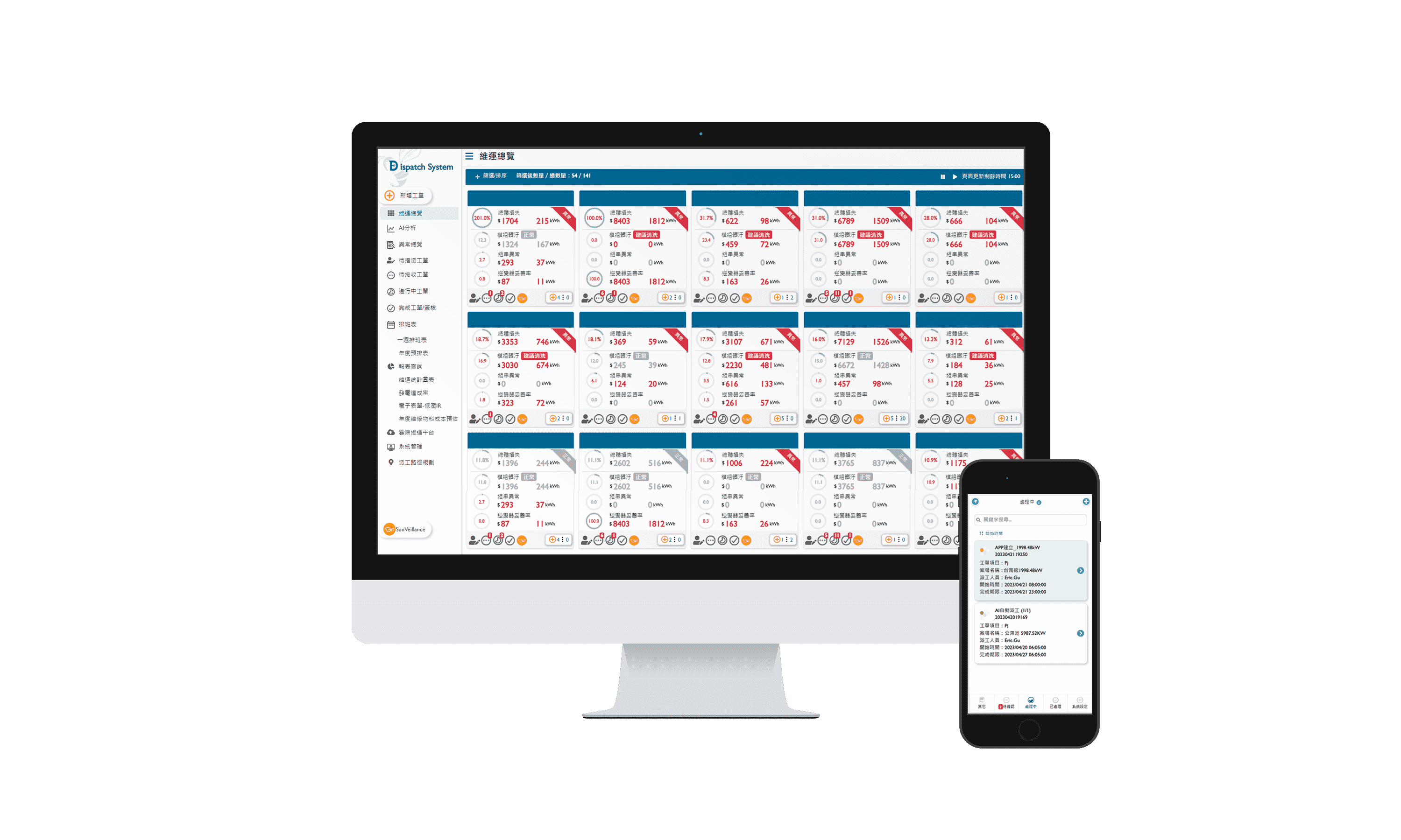 PA直营太阳能智能运维管理系统包括云端监控工具、、AI分析与智慧自动派工及运维APP,,实现电厂自主管理。。