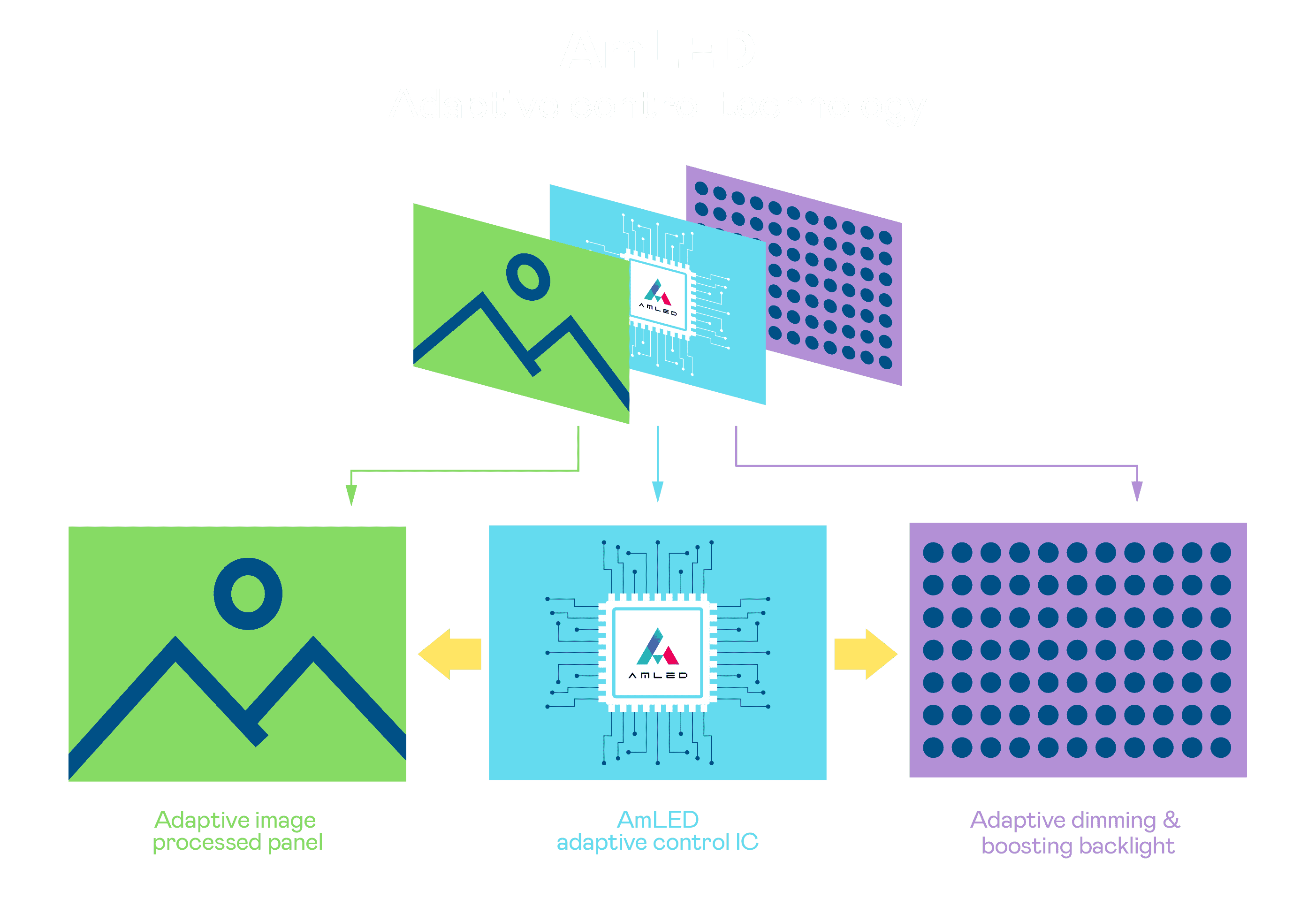 透过动态影像处理和 Mini LED 背光模组的动态对比及峰值亮度调变,,,,AmLED 显示技术精准细致的局部调光效果达到超过 1,000 nits 的超高亮度表现,,,,亮部更明亮、、、暗处更深邃,,,呈现真实黑色中的亮度以及平滑灰阶,,,打造出具层次分明的精致光影细节。。